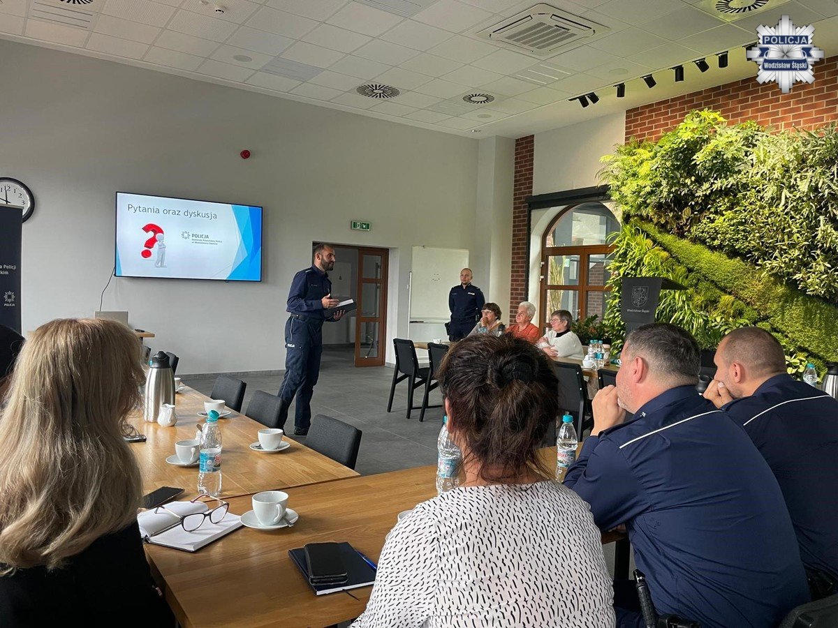 Wodzisławskich seniorów przywitał Komendant Powiatowy Policji w Wodzisławiu Śląskim, inspektor Dariusz Zajda. Następnie prowadzący debatę starszy aspirant Sebastian Marciniak omówił problematykę hejtu, oszustw oraz bezpieczeństwa w ruchu drogowym. Był też czas na dyskusję, w której seniorzy wzięli aktywny udział.