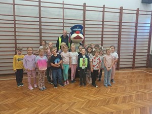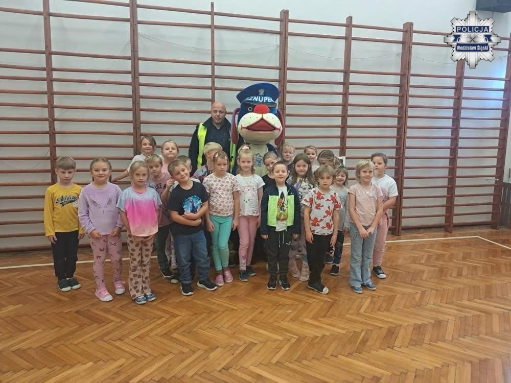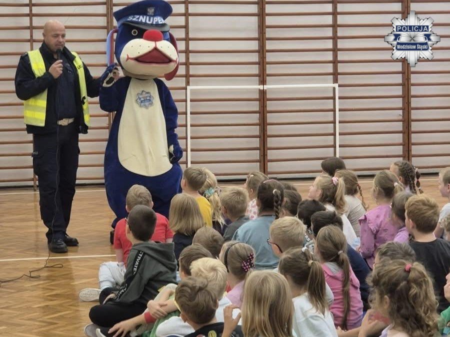 Wodzisławscy policjanci przeprowadzili spotkania profilaktyczne z uczniami Szkoły Podstawowej w Gołkowicach. Z uczniami najmłodszych klas o zasadach bezpieczeństwa podczas drogi do szkoły rozmawiał policjant wydziału ruchu drogowego. Mundurowemu towarzyszył pies Sznupek, maskotka śląskiej Policji. Najmłodsi uczestnicy ruchu drogowego poznali najważniejsze zasady bezpieczeństwa w ruchu drogowym. Wiedzą, że mają wpływ na swoje bezpieczeństwo i obiecali, że będą odpowiedzialnymi uczestnikami ruchu drogowego.
