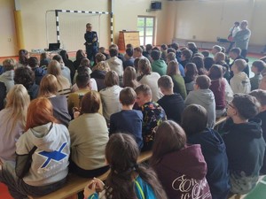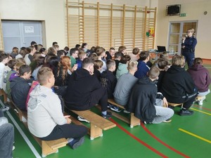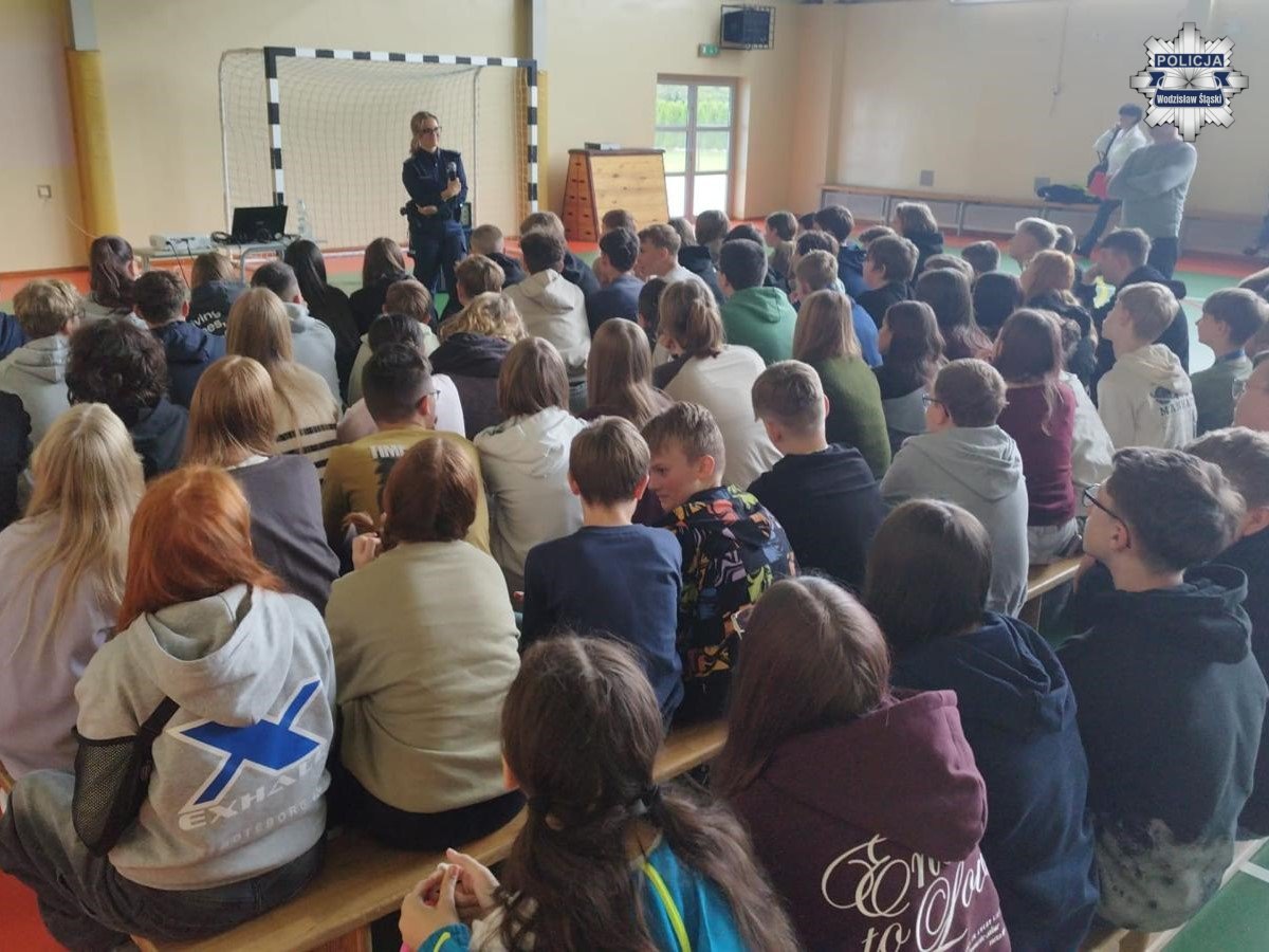 Natomiast z uczniami klas VII i VIII mundurowi rozmawiali o problemie hejtu, cyberprzemocy, przemocy rówieśniczej, odpowiedzialności prawnej nieletnich, zachowaniu w szkole, reagowaniu na przemoc wobec innych, a także do kogo zwrócić się po pomoc. Nie zabrakło także rozmów o zasadach bezpieczeństwa w ruchu drogowym i korzystania z hulajnóg elektrycznych. Młodzież zadawała ciekawe pytania i chętnie dzieliła się swoimi przemyśleniami i doświadczeniami.