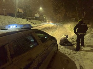 Spał na chodniku. Zauważyli go policjanci z drogówki podczas nocnego patrolu