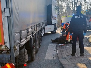 Jak się okazało, 63-letnia kobieta, będąca pod wpływem alkoholu, postanowiła przejść przez jezdnię na czerwonym świetle. W tym samym czasie kierujący pojazdem ciężarowym ruszył, mając zielone światło. W efekcie kobieta odbiła się od tylnej części naczepy, a następnie przewróciła się na chodnik. Kierujący pojazdem ciężarowym 49-latek natychmiast zatrzymał swój pojazd, udzielił kobiecie pomocy, wezwał także służby.