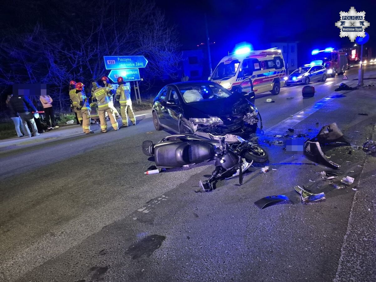 Wczoraj około godziny 19.00 w Wodzisławiu Śląskim na ulicy Pszowskiej doszło do wypadku drogowego z udziałem pojazdu osobowego oraz motocykla. Pracujący na miejscu policjanci wstępnie ustalili, że kierujący Hondą, 18-letni mieszkaniec Wodzisławia Śląskiego, wykonując manewr skrętu w lewo, w ulicę Wolności, nie ustąpił pierwszeństwa prawidłowo jadącemu z przeciwnego kierunku motocykliście, doprowadzając do zderzenia się pojazdów.